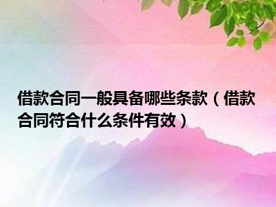 目前大家应该是对借款合同符合什么条件有效比较感兴趣的,所以今天CC就来为大家整理了一些关于借款合同符合什么条件有效方面的相关知识来分享给大家,希望大家会喜欢哦。