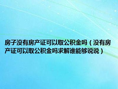 导读 目前大家应该是对没有房产证可以取公积金吗求解谁能够说说比较感兴趣的,所以今天好房网小编CC就来为大家整理了一些关于没有房产证可以取公