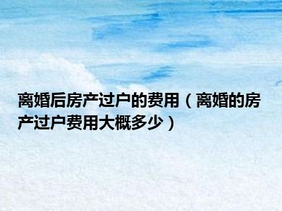 目前大家应该是对离婚的房产过户费用大概多少比较感兴趣的,所以今天CC就来为大家整理了一些关于离婚的房产过户费用大概多少方面的相关知识来分享给大家,希望大家会喜欢哦。