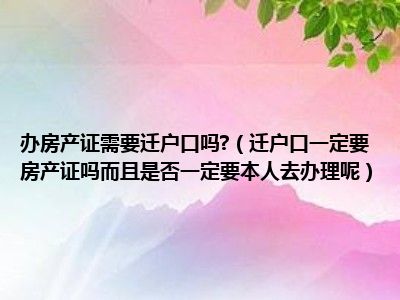导读 目前大家应该是对迁户口一定要房产证吗而且是否一定要本人去办理呢比较感兴趣的,所以今天好房网小编CC就来为大家整理了一些关于迁户口一定