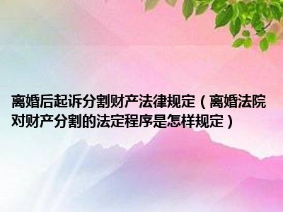 目前大家应该是对离婚法院对财产分割的法定程序是怎样规定比较感兴趣的,所以今天CC就来为大家整理了一些关于离婚法院对财产分割的法定程序是怎样规定方面的相关知识来分享给大家,希望大家会喜欢哦。