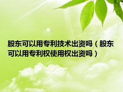 目前大家应该是对股东可以用专利权使用权出资吗比较感兴趣的,所以今天CC就来为大家整理了一些关于股东可以用专利权使用权出资吗方面的相关知识来分享给大家,希望大家会喜欢哦。