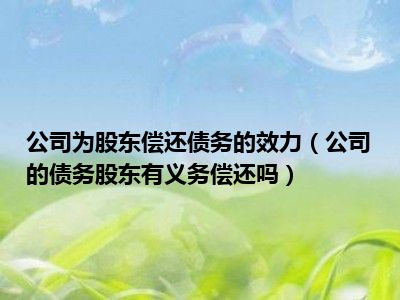 目前大家应该是对公司的债务股东有义务偿还吗比较感兴趣的,所以今天CC就来为大家整理了一些关于公司的债务股东有义务偿还吗方面的相关知识来分享给大家,希望大家会喜欢哦。