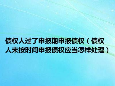 目前大家应该是对债权人未按时间申报债权应当怎样处理比较感兴趣的,所以今天CC就来为大家整理了一些关于债权人未按时间申报债权应当怎样处理方面的相关知识来分享给大家,希望大家会喜欢哦。