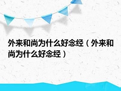 目前应该是有很多小伙伴对于外来和尚为什么好念经方面的信息比较感兴趣,现在小编就收集了一些与外来和尚为什么好念经相关的信息来分享给大家,感兴趣的小伙伴可以接着往下看,希望会帮助到你哦。