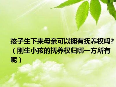 目前大家应该是对刚生小孩的抚养权归哪一方所有呢比较感兴趣的,所以今天CC就来为大家整理了一些关于刚生小孩的抚养权归哪一方所有呢方面的相关知识来分享给大家,希望大家会喜欢哦。