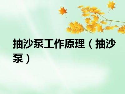1、抽沙泵,就是指用来输送沙浆的泵,一般以离心泵为主。