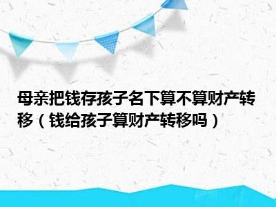 目前大家应该是对钱给孩子算财产转移吗比较感兴趣的,所以今天CC就来为大家整理了一些关于钱给孩子算财产转移吗方面的相关知识来分享给大家,希望大家会喜欢哦。