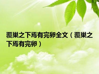 导读 相信目前很多小伙伴对于覆巢之下,焉有完卵都比较感兴趣,那么小搜今天在网上也是收集了一些与覆巢之下,焉有完卵相关的信息来分享给大家,