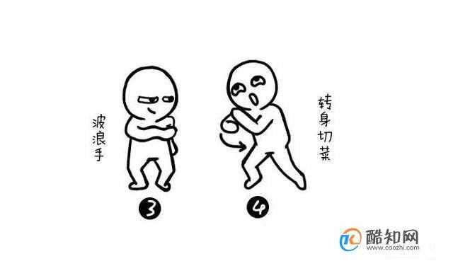 双脚张开,手的动作想一个波浪一样,右手一点一点左手手腕,就像切菜一样。