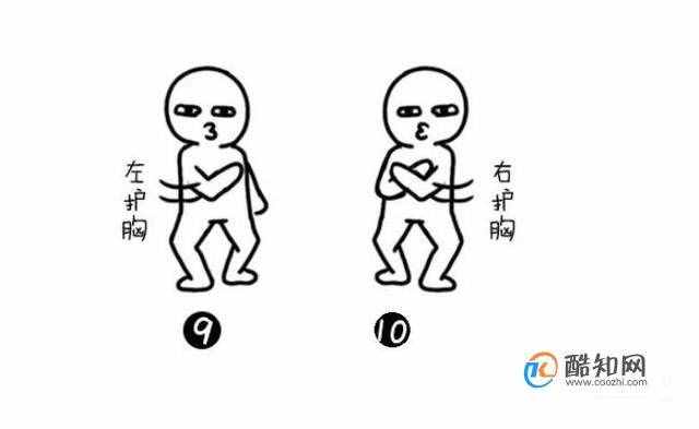 左手护胸,右手护胸,连贯进行。