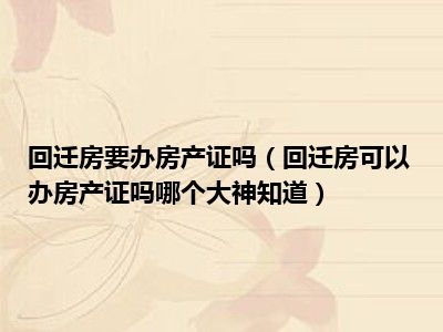 导读 目前大家应该是对回迁房可以办房产证吗哪个大神知道比较感兴趣的,所以今天好房网小编CC就来为大家整理了一些关于回迁房可以办房产证吗哪个