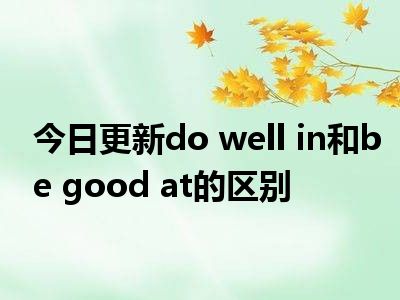 两者的区别:do well in意思是在...成绩好;在...做得好;在...表现好,表示一种情况也可指在具体的一次活动中表现出色;be good at擅长...;善于...;在(某方面)出色,强调一种笼统情况。good只是形容词用来修饰名词,如果遇到动词必须用well来强调“好”。
