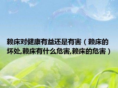 导读目前大家应该是对赖床的坏处,赖床有什么危害,赖床的危害比较感兴趣的,所以今天小编CC就来为大家整理了一些关于赖床的坏处,赖床有什么危害,...