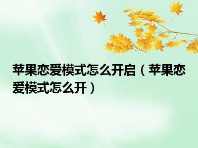 导读 1、苹果恋爱模式怎么开?2、1 进入手机对焦设置,新增对焦模式时选择【自定义】。3、2 从图标中选择Love,命名为Love Mode。4、3 设置好
