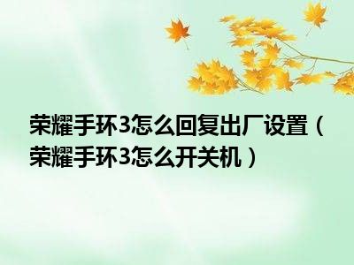 导读 1、荣耀手环3怎么开关机2、荣耀手环3开机时,需要将手环与充电底座和充电线连接,将USB头插入5V充电器或电脑。这时候手环会自动开启。另外