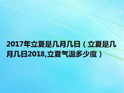 目前大家应该是对立夏是几月几日2018,立夏气温多少度比较感兴趣的,所以今天小编CC就来为大家整理了一些关于立夏是几月几日2018,立夏气温多少度方面的相关知识来分享给大家,希望大家会喜欢哦。