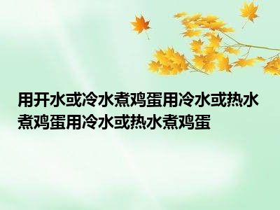 目前大家应该是对煮鸡蛋用开水还是冷水,水煮蛋用冷水还是热水,煮鸡蛋用冷水还是热水比较感兴趣的,所以今天小编CC就来为大家整理了一些关于煮鸡蛋用开水还是冷水,水煮蛋用冷水还是热水,煮鸡蛋用冷水还是热水方面的相关知识来分享给大家,希望大家会喜欢哦。
