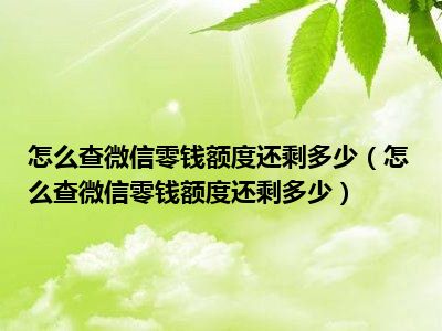 导读 1、怎么查微信零钱额度还剩多少?2、1 打开微信,点击我,支付和钱包。3、2 单击更改选项。4、3 点击提现,输入提现金额和密码以提取零钱。