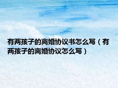 目前大家应该是对有两孩子的离婚协议怎么写比较感兴趣的,所以今天CC就来为大家整理了一些关于有两孩子的离婚协议怎么写方面的相关知识来分享给大家,希望大家会喜欢哦。