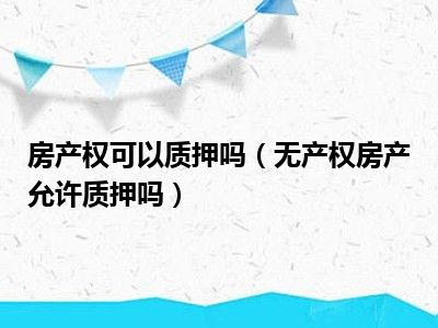 目前大家应该是对无产权房产允许质押吗比较感兴趣的,所以今天CC就来为大家整理了一些关于无产权房产允许质押吗方面的相关知识来分享给大家,希望大家会喜欢哦。