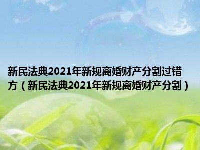 目前大家应该是对新民法典2021年新规离婚财产分割比较感兴趣的,所以今天CC就来为大家整理了一些关于新民法典2021年新规离婚财产分割方面的相关知识来分享给大家,希望大家会喜欢哦。