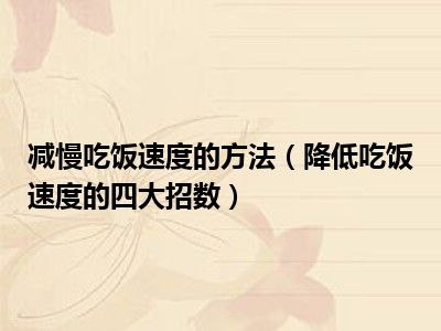 目前大家应该是对降低吃饭速度的四大招数比较感兴趣的,所以今天小编CC就来为大家整理了一些关于降低吃饭速度的四大招数方面的相关知识来分享给大家,希望大家会喜欢哦。