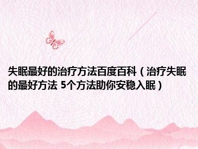 目前大家应该是对治疗失眠的最好方法 5个方法助你安稳入眠比较感兴趣的,所以今天小编CC就来为大家整理了一些关于治疗失眠的最好方法 5个方法助你安稳入眠方面的相关知识来分享给大家,希望大家会喜欢哦。