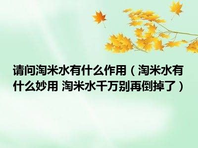 目前大家应该是对淘米水有什么妙用 淘米水千万别再倒掉了比较感兴趣的,所以今天小编CC就来为大家整理了一些关于淘米水有什么妙用 淘米水千万别再倒掉了方面的相关知识来分享给大家,希望大家会喜欢哦。