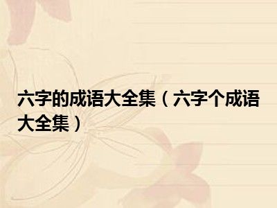目前应该是有很多小伙伴对于六字个成语大全集方面的信息比较感兴趣,现在小编就收集了一些与六字个成语大全集相关的信息来分享给大家,感兴趣的小伙伴可以接着往下看,希望会帮助到你哦。