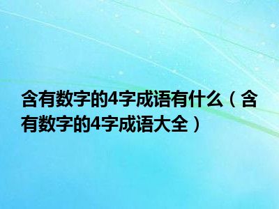 目前应该是有很多小伙伴对于含有数字的4字成语大全方面的信息比较感兴趣,现在小编就收集了一些与含有数字的4字成语大全相关的信息来分享给大家,感兴趣的小伙伴可以接着往下看,希望会帮助到你哦。