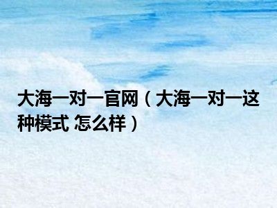 目前应该是有很多小伙伴对于大海一对一这种模式 怎么样方面的信息比较感兴趣,现在小编就收集了一些与大海一对一这种模式 怎么样相关的信息来分享给大家,感兴趣的小伙伴可以接着往下看,希望会帮助到你哦。