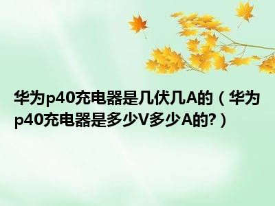 导读 1、华为p40充电器是多少V多少A的?2、华为p40充电器支持最大10V 2 25A超级快充,兼容4 5V 5A或5V 4 5A超级快充,兼容9V 2A快充。3、华为P40