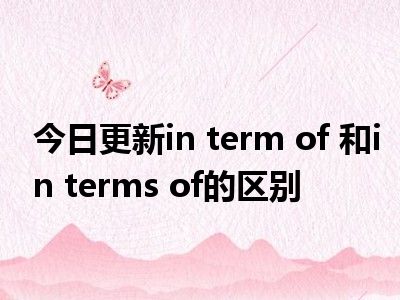 两者的区别:in term of 意思是根据(就…而言);按照(在…方面),这个词组来源更多的是网络;in terms of意思是在…方面;从…角度看;根据…来说,是科学写作中的常用词,更正式一些。在《朗文英文当代大词典》里,也是只有 in terms of 而没有 in term of 。