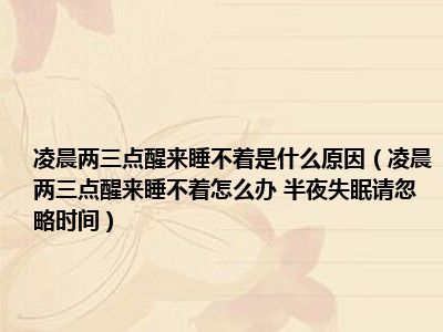 导读 目前大家应该是对凌晨两三点醒来睡不着怎么办 半夜失眠请忽略时间比较感兴趣的,所以今天小编CC就来为大家整理了一些关于凌晨两三点醒来睡...