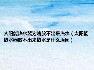 目前应该是有很多小伙伴对于太阳能热水器放不出来热水是什么原因方面的信息比较感兴趣,现在小编就收集了一些与太阳能热水器放不出来热水是什么原因相关的信息来分享给大家,感兴趣的小伙伴可以接着往下看,希望会帮助到你哦。