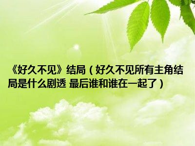目前应该是有很多小伙伴对于好久不见所有主角结局是什么剧透 最后谁和谁在一起了方面的信息比较感兴趣,现在小编就收集了一些与好久不见所有主角结局是什么剧透 最后谁和谁在一起了相关的信息来分享给大家,感兴趣的小伙伴可以接着往下看,希望会帮助到你哦。