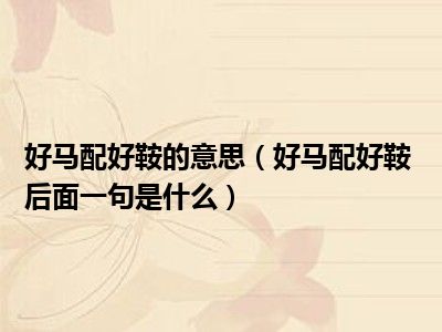 目前应该是有很多小伙伴对于好马配好鞍 后面一句是什么方面的信息比较感兴趣,现在小编就收集了一些与好马配好鞍 后面一句是什么相关的信息来分享给大家,感兴趣的小伙伴可以接着往下看,希望会帮助到你哦。