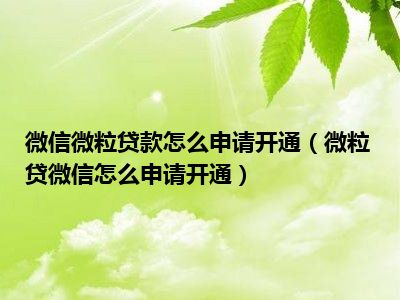 目前应该是有很多小伙伴对于微粒贷微信怎么申请开通方面的信息比较感兴趣,现在小编就收集了一些与微粒贷微信怎么申请开通相关的信息来分享给大家,感兴趣的小伙伴可以接着往下看,希望会帮助到你哦。
