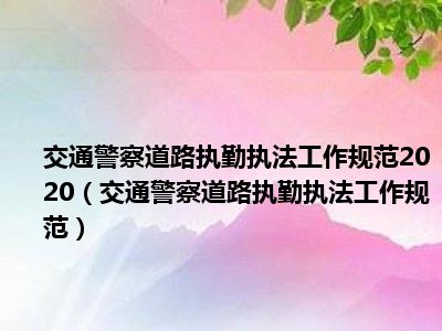 导读相信目前很多小伙伴对于交通警察道路执勤执法工作规范都比较感兴趣,那么小搜今天在网上也是收集了一些与交通警察道路执勤执法工作规范相关...