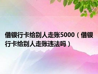 目前大家应该是对借银行卡给别人走账违法吗比较感兴趣的,所以今天CC就来为大家整理了一些关于借银行卡给别人走账违法吗方面的相关知识来分享给大家,希望大家会喜欢哦。