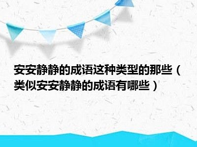 目前应该是有很多小伙伴对于类似“安安静静”的成语有哪些方面的信息比较感兴趣,现在小编就收集了一些与类似“安安静静”的成语有哪些相关的信息来分享给大家,感兴趣的小伙伴可以接着往下看,希望会帮助到你哦。
