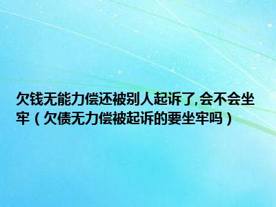 目前大家应该是对欠债无力偿被起诉的要坐牢吗比较感兴趣的,所以今天CC就来为大家整理了一些关于欠债无力偿被起诉的要坐牢吗方面的相关知识来分享给大家,希望大家会喜欢哦。