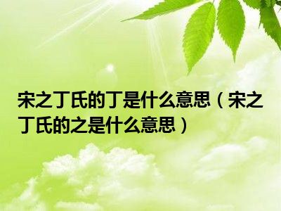 目前应该是有很多小伙伴对于“宋之丁氏”的“之”是什么意思方面的信息比较感兴趣,现在小编就收集了一些与“宋之丁氏”的“之”是什么意