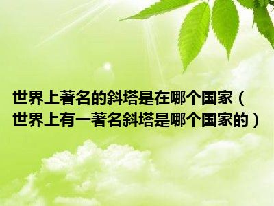 目前应该是有很多小伙伴对于世界上有一著名斜塔是哪个国家的方面的信息比较感兴趣,现在小编就收集了一些与世界上有一著名斜塔是哪个国家