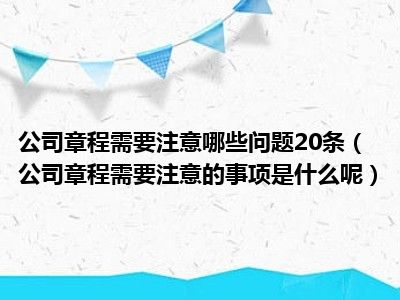 目前大家应该是对公司章程需要注意的事项是什么呢比较感兴趣的,所以今天CC就来为大家整理了一些关于公司章程需要注意的事项是什么呢方面的相关知识来分享给大家,希望大家会喜欢哦。