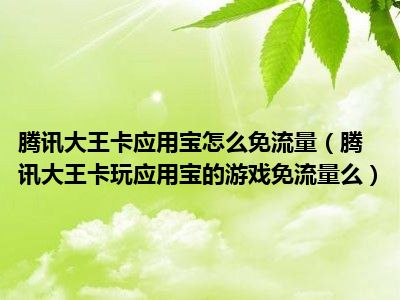 目前应该是有很多小伙伴对于腾讯大王卡玩应用宝的游戏免流量么方面的信息比较感兴趣,现在小编就收集了一些与腾讯大王卡玩应用宝的游戏免流量么相关的信息来分享给大家,感兴趣的小伙伴可以接着往下看,希望会帮助到你哦。
