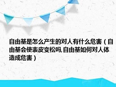 目前大家应该是对自由基会使表皮变松吗,自由基如何对人体造成危害比较感兴趣的,所以今天小编CC就来为大家整理了一些关于自由基会使表皮变松吗,自由基如何对人体造成危害方面的相关知识来分享给大家,希望大家会喜欢哦。