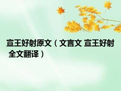 导读 目前应该是有很多小伙伴对于文言文 宣王好射 全文翻译方面的信息比较感兴趣,现在小编就收集了一些与文言文 宣王好射 全文翻译相关的...