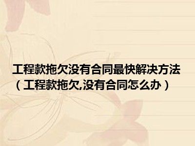 目前大家应该是对工程款拖欠,没有合同怎么办比较感兴趣的,所以今天CC就来为大家整理了一些关于工程款拖欠,没有合同怎么办方面的相关知识来分享给大家,希望大家会喜欢哦。